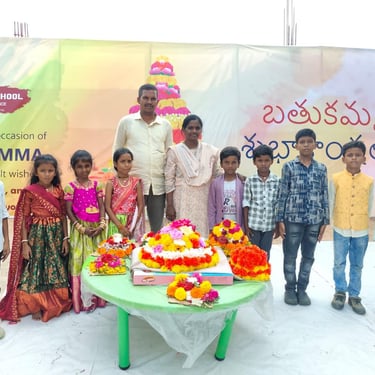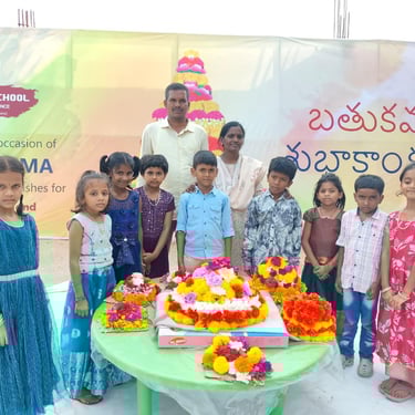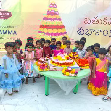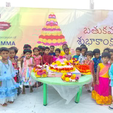 Our school celebrates Bathukamma with joy and devotion, where vibrant flowers come alive in harmony, nurturing tradition, togetherness, and the spirit of culture under the graceful guidance of our community.